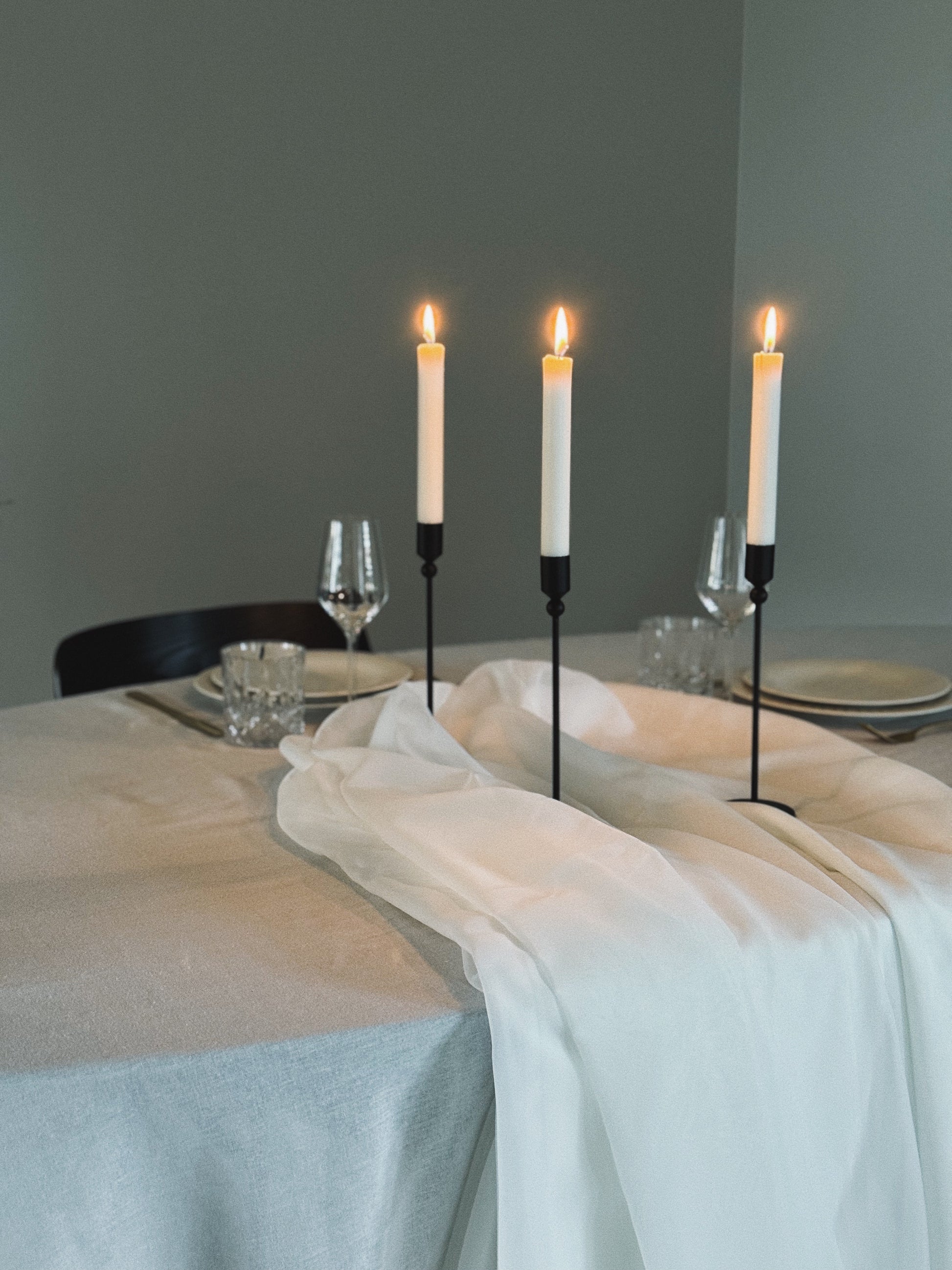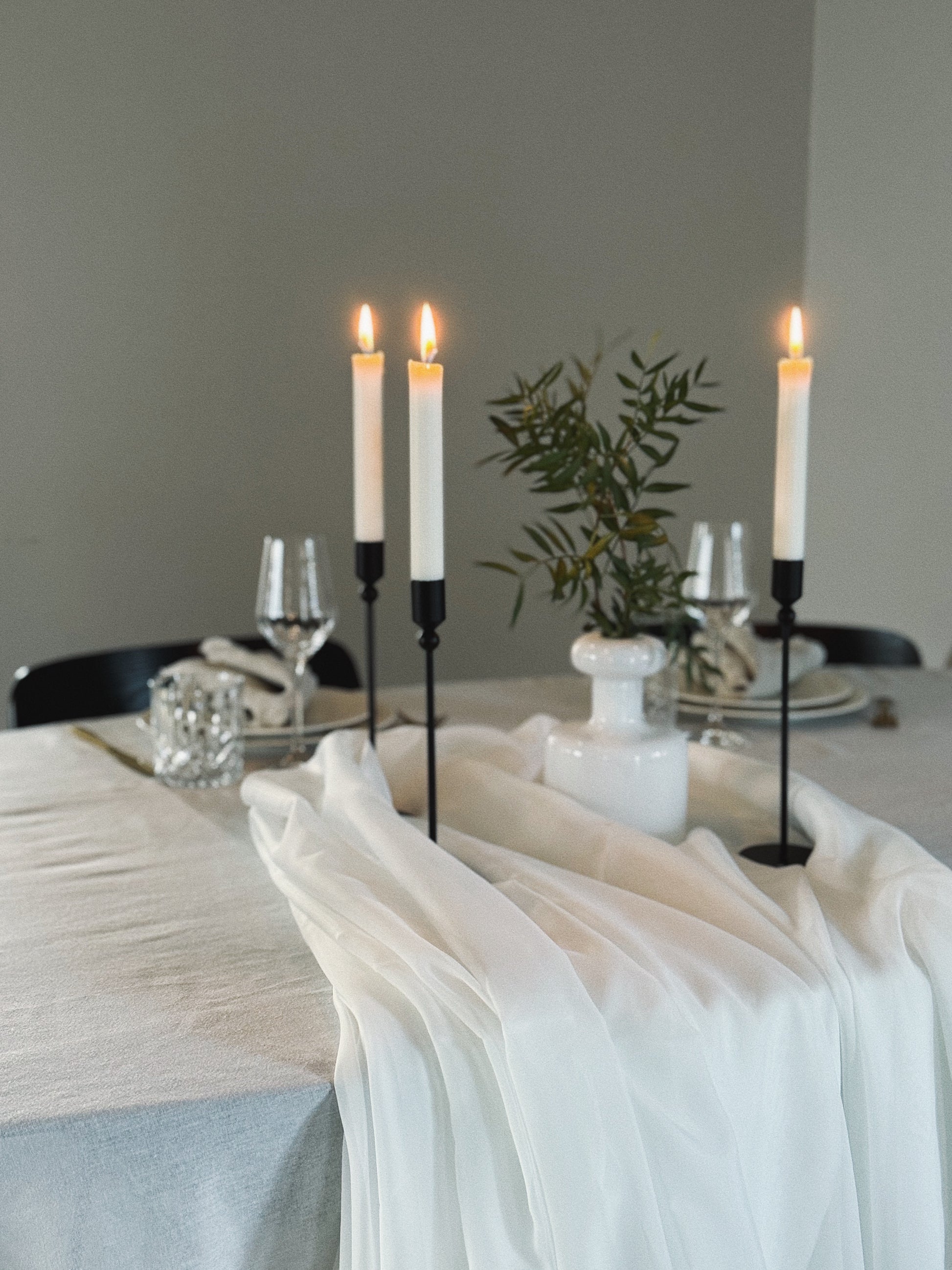 Nämä korkeat, mustat kynttilänjalat ovat erinomainen valinta moniin juhliin, kuten häihin, syntymäpäiväjuhliin tai valmistujaisiin. Niiden ajaton muotoilu luo kivan tunnelman ja musta väri tuo kattaukseen kontrastia. Sopivat loistavasti sekä perinteisiin että modernimpiin juhlatyyleihin. Vuokrausaika torstaista maanantaihin (4vrk).